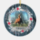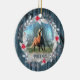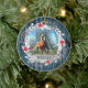 Personalised horse photo Christmas ornament with your horse's photo in worn blue wood frame, silver elements, Christmas wreath and a silver horse shoe on the back.