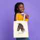 Brown Horse portrait cowgirl equestrian personalised name tote bag, horse lovers gift, gift for girls