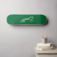 A depiction of the White Horse at Uffington Castle Berkshire, UK in cream against a green (British racing green) background. The Uffington Castle White Horse is the oldest chalk cut figure in the British Isles and may be more than 3000 years old.They probably didn't have racing cars back then but skateboarding may have been possible. :)