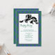 A sporty design featuring a jockey on a horse with a blue and green argyle background.