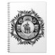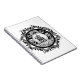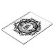 Graphic abstract motif Ink tattoo style drawing Hungarian influence, with King Arpad and a horse in the centre and watching eye at the top with drama masks on the side and palm silhouettes around the border