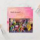 Elegant ,whimsical floral design with a magic butterfly plant,floral swirls,faeries,horses,musical nocturne in vibrant blue green,red,yellow,white colours.Acrylic painting on canvas, mixed media painting with golden and silver foil .This artistic,cool design is easily customisable with your text and initials as a wedding ceremony,nuptial announcement ,concert,anniversary ,programs,place cards, thank you,sweet 16 birthday parties,romantic engagement showers,holiday ,office ,family reunions ,new year's day eve celebrations,,anniversaries,gatherings,recital or just about any event you wish!