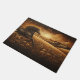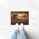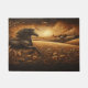 A black horse runs through a field of tall grass with a farmhouse and rolling hills in the background. The sun shines brightly in the sky, illuminating the scene.