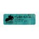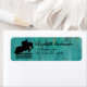 A horse and rider silhouette featuring an equestrian rider on a show jumper / hunter jumping over a fence. Turquoise coloured rusted metal background.