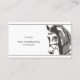 This equestrian themed business card features a hand drawn horse sketch and a snaffle bit in grey. -