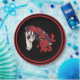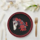 Paper plates with with horse skull decorated with red roses and red trim. Perfect for Los dias de los Muertos, Halloween, or any spooky gathering.