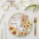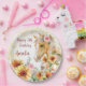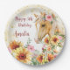 Palomino horse with sunflowers and pink flowers floral girls birthday party personalised birthday paper plates template. Beautiful watercolor horse portrait, nice for horse loving people.