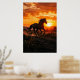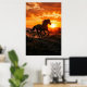 Bring motion, warmth, and western character into your space with this horse sunset poster showcasing a running black horse beneath a vivid golden-orange sky.