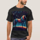 A striking T-shirt design featuring a majestic horse in motion, its mane flowing gracefully in the wind. The artwork captures the horse's power and elegance, set against a dynamic background of vibrant colours or subtle earthy tones. Perfect for equestrian enthusiasts, nature lovers, or anyone drawn to the spirit of freedom and strength that a horse represents.