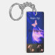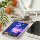 A vibrant blue, white. and pink coloured keychain, displaying a modern horse pattern design. Horse lovers everywhere will love it. Both sides have text areas for customisation. Special gift for horse owners and riders.