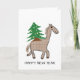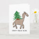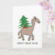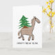 Funny brown horse on white background with cute green Christmas tree and New Year wishes