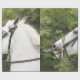 A watercolour design of a beautiful white horse impatiently waiting to gallop off.