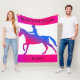 FLEECE BLANKET IN PINK & BLUE WITH HORSE & RIDER PERONALIZED.