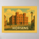 Commemorate Horsens, Denmark with this charming vintage-inspired illustration. Featuring the city's scenic harbour, boats, and a sun-drenched sky, this design is perfect for travelers, Danes, and lovers of coastal European landscapes.