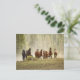 Horses cresting small hill during roundup, postcard