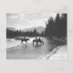 Horses drinking from and crossing a river postcard