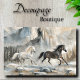 This majestic decoupage tissue design by Decoupage_Boutique features two stallions — one snowy white, the other charcoal grey — racing through a fog-drenched mountain range. Dramatic cliffs and evergreens create a striking backdrop, with soft watercolor-style brushwork and a palette of mist, stone, and pale gold. Perfect for lodge-style furniture, adventurous themes, or any project calling for the grandeur of wild nature and the beauty of motion.