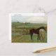A postcard with the fine art painting, Horses in a Meadow (1871), by the French impressionist artist Edgar Degas (1834-1917). A portrait of two horses one brown and one white in the pasture.