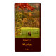 This lovely red wine bottle label a landscape of two brown horses in their green pasture with autumn foliage colours of red, orange, yellow and gold in the hills behind. A fence surrounds the pasture. All text can be customised with your special information.