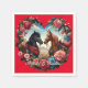A black and sorrel horse are pictured inside a heart made of beautiful flowers.
