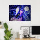 Fairy Tale Horses Blue Night & Full Moon Posters Prints - Love Horses - Pop Art Style Digital Animal Art - Digital Horses Artwork - Farm Animals