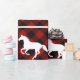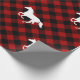 A silhouette of a running horse on red Buffalo Plaid. Perfect wrapping for the perfect horse lover's gift.