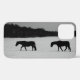 Horses On Snow - Landscape photograph in black and white of two horses walking across a snow covered field.