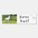 A bumper sticker with a photograph of a Paint Horse or Pinto Horse trotting, with the phrase Horses Rock!