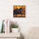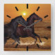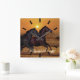 Horses running at ocean sunset square wall clock