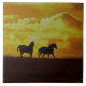 Two horses running in a beautiful southwestern sunrise, this is a really pretty art tile and looks great framed too.