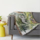A quality printed throw has its advantages. This is a much finer weave throw than its loopier cousins, and though lighter, it is worth the investment for custom room accessorizing. The back is much prettier than the typical brown, and the fringe on the long sides very vivid, the selvage nicely done. Before photographing, I washed the throw in cold water, delicate, with a thicker woven throw the same size. On tumble dry low, this throw was dry in half the time as the other. This is a very practical quality if you use throws for furniture covers or to wrap up in frequently. The sleekness of the fabric makes it a great layer for accenting or protecting without the feeling of sitting on too much stuff. Perfect for napping or when you feel a light chill coming on. The color printing is beautiful and on this fabric, matched the design and color of my Photoshop image. This is an advantage for blending room fabrics and colors. The fringe on the short sides prints the colors from the design image and therefore varies from the side fringe. I streaked a white fractal line through the plaid pattern to give the illusion of weaving. This printed as crisp as an illusory thread, and put some white in the short side fringe, showing another advantage of print vs loomed- for artistic purposes, line lines, detail, and color integrity can be planned and preserved. My loomed throws have color limitations and more of a needlepoint texture. Print throws reproduce an exact image. The throw felt a little stiff straight out of the package, but this went away in the first delicate wash. Of course I searched the wash water for ink or bleeding and there was none.