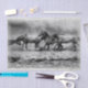 Horses in the sea water grunge vintage painting in black and white