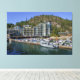 Experience coastal tranquillity in Horseshoe Bay, Vancouver. The image showcases a vibrant harbour, boats gliding on clear waters, and the Westbank Apartment complex overlooking the Horseshoe Bay Sanctuary. A picturesque blend of maritime charm and architectural elegance under a radiant blue sky