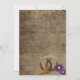 Rustic style country desk stationery on a barn wood look back "Tie the Knot" wedding invitation with horseshoes tied within the rope knot and accented with purple daisies.