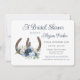 Pretty floral dusty blue bouquet and rustic horse shoes design bridal shower invitation with editable text and barn wood design on back.