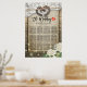 Rustic Country Style 12 Tables Wedding Seating Chart Poster Templates - Couple Old Horseshoe Heart with Rope Bow Knot and White Lace, Hydrangea Flower, String Lights and  Burlap Cloth on Old Barn Wood Background.