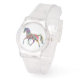 I only have one complaint. I ordered the watch with clear case and strap, and what was sent was white case and strap. I'm going to keep it because 1) it looks very nice in white, and 2) it would take too long to get a replacement made and sent in time for my occasion. Aside from the mix up with the color, the watch does look very good in white. The purple dial is actually sparkly which did not show in the online images. That was a nice surprise. If you like Swatch watches this is very similar to those. It's 33.6mm in diameter, 10.5mm thick, and 40.6mm lug to lug. Stainless steel case back says 3ATM/30m WR, so no swimming or showering or submerging this one. If you like Woodstock, this is a great choice.