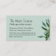 A business card template for herb growers, suppliers and markets, with four images of parsley, sage, rosemary and thyme across the top of the front, with company name below, and a country style pale green gingham check pattern in the background. The rear has templates for Name, address and other details. This is on a plain white stock with a sage green background colour, all completely customisable.