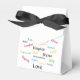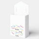 Tent with Ribbon Favour Box Create a lasting impression with a fully customisable tent favour box. Great for weddings, birthdays, corporate events and more. Printed in full colour on all sides of this high quality card stock box to coordinate perfectly with your theme! Fill this box with sweet treats or trinkets for a special gift befitting your special guests. Dimensions: 3” x 1.5” x 3.75”. Printed in full colour on high quality card stock. Comes with 18” diagonally cut ribbon in your choice of white, purple, pink or black (select your colour below). Favour boxes are shipped flat and require simple folding to assemble. Buy in bulk and save!