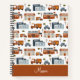 If your kid loves emergency services like police and fire, this custom red and blue school notebook is perfect! Notebook features a pattern of a hospital, fire station, and police station. There are also emt vehicles like a police car, firetruck, and ambulance. Notebook may be personalised with a kids name on top of a red background. This notebook makes a great back-to-school, birthday, Christmas, or other holiday gift, especially for a little boy.