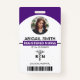 Hospital Registered Nurse RN employee, caduceus and barcode purple photo template id badge. Personalise this medical staff photo ID card badge with your name, ID, title, hospital name and barcode. Add more information on the back.