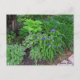 This lush garden postcard was created from an original photo of my hosta plants growing around my shade tree. The purple flower is a spiderwort and this woodland plant looks nice among the green leaves. A great card for business or personal use.