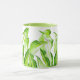 This mug bears a painting titled 'Hosta with the Mosta' by me. It features the delightful foliage of Hosta in early spring, that bursts with the fecundity of this season through multiple (hence 'Mosta') shades of green. It captures the playful curly finials and lazy stretches of leaves, as they come to life after the long slumber of winter. Spring is over quickly but you can savour its charm throughout the year by enjoying your daily beverage in this mug!