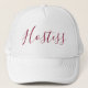 A thoughtful memento for your hostess, this white trucker hat features "Hostess" written across the front in burgundy font. Shop today!