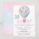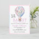 Hot air balloon bear girl baby shower invitation
