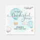 Hot Air Balloon Boys First Birthday party napkins with blue watercolor hot air balloons and floating clouds. Wanderlust and ONEderful world 1st birthday party for boys.