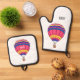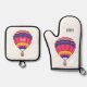Hot air balloon cartoon illustration oven mitt & pot holder set
