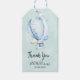 This cute blue watercolor up up and away hot air balloon and elephant baby shower tag is a sweet way to thank guests for coming to your little boy's baby shower.