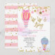 Hot Air Balloon Glitter Star Girl Baby Shower Invitation