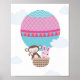 Hot Air Balloon Monkey and Bunny Nursery Art Poster